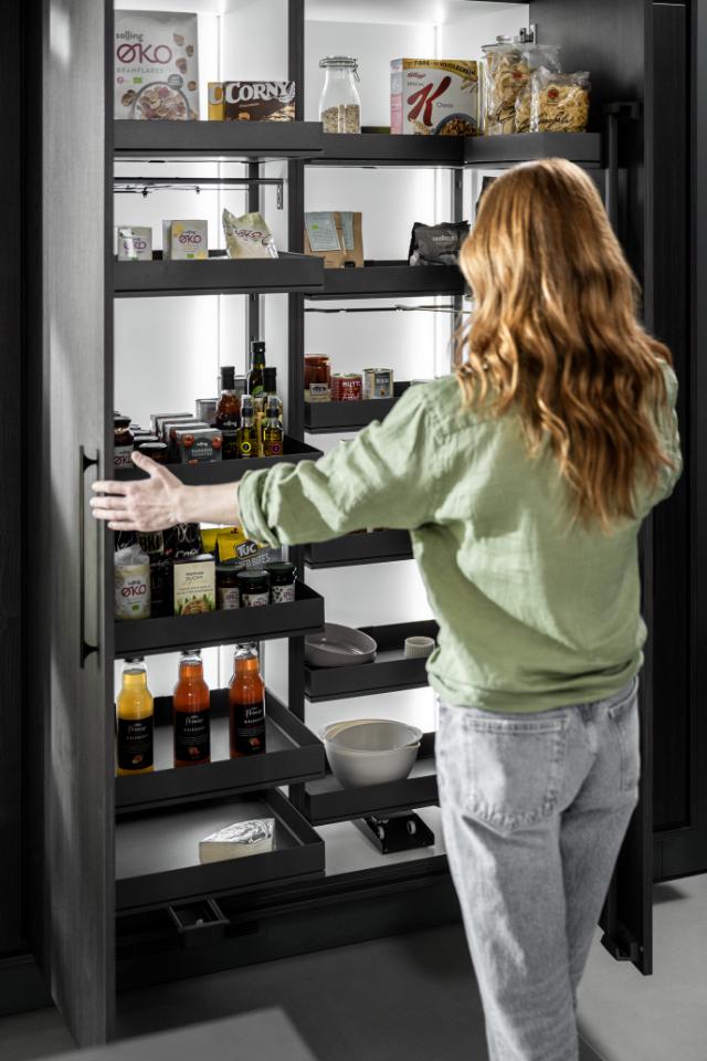 Vores beslag og opbevaringssystemer er designet til at optimere pladsen i køkken, bad og garderobe – uden at gå på kompromis med designet.