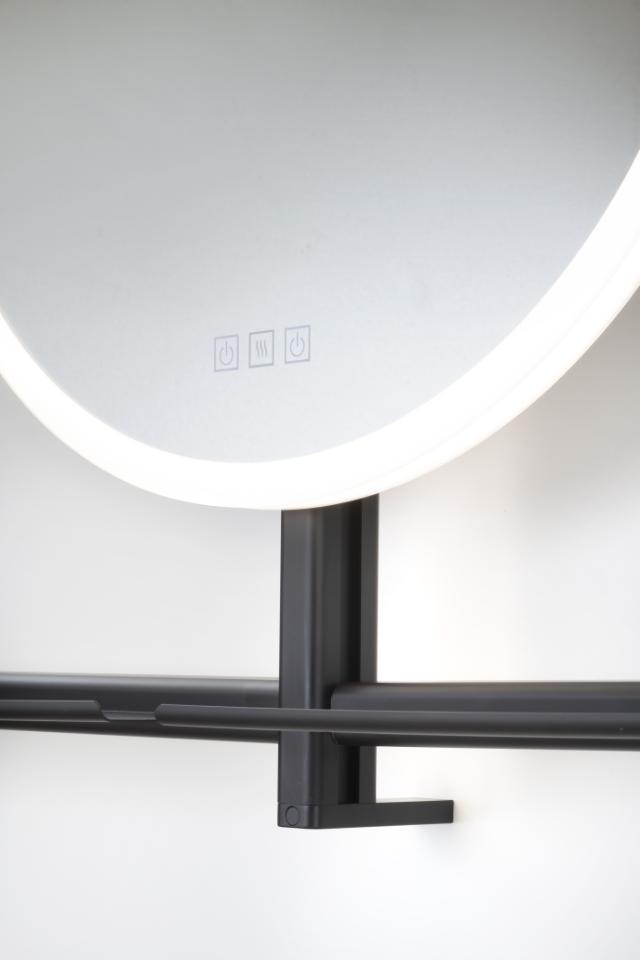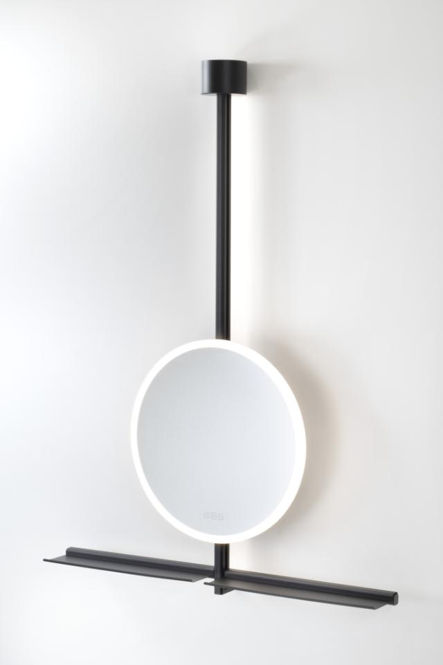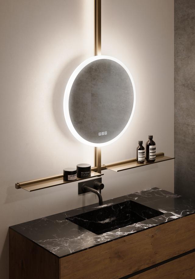 IO‑D kombinerer spejl, LED-lys og praktiske hylder i én komplet løsning med touch-betjening, farvetemperaturvalg og anti-dug funktion. IO‑S har samme tekniske funktioner, men i et mere minimalistisk design.