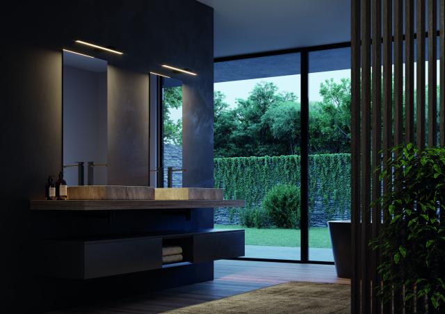 Domus Line forener italiensk design og funktionalitet i deres elegante LED-belysning til badeværelset. Hos OL Beslag fører vi to populære modeller fra serien: IO‑D og IO‑S. Begge er IP44-godkendt og derfor velegnede til fugtige rum.