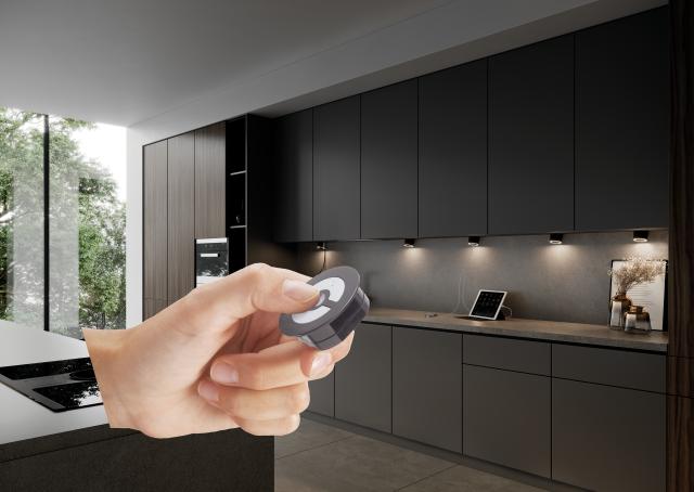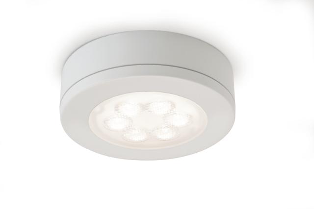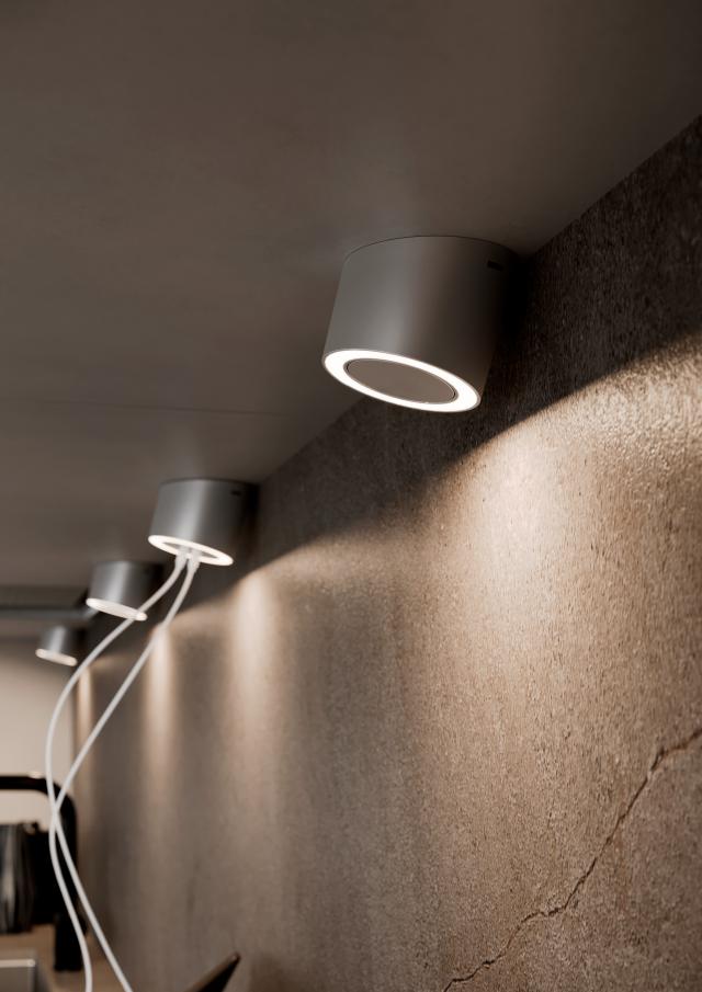 Mikroskopisk LED-spot, der monteres som indbygget eller på overflade og leverer fokuseret symmetrisk accentbelysning – perfekt til raffinering af møbler og skabe.