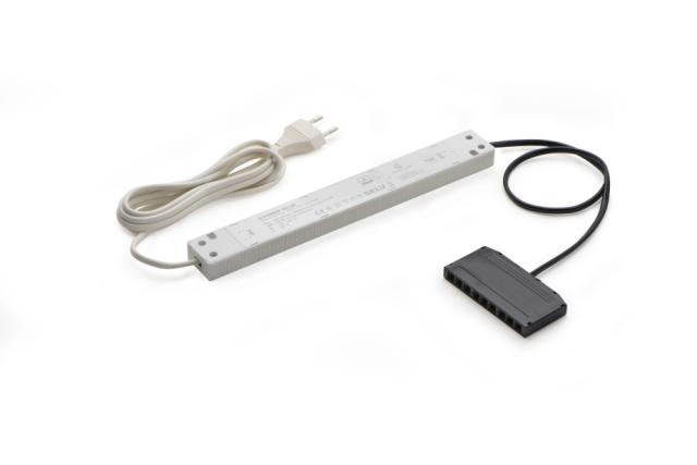En smart LED-strømforsyning med trådløs styring via EASI DISK, der tillader op til tre lysgrupper at blive tændt, dæmpet og justeret inden for en rækkevidde på 15 m.