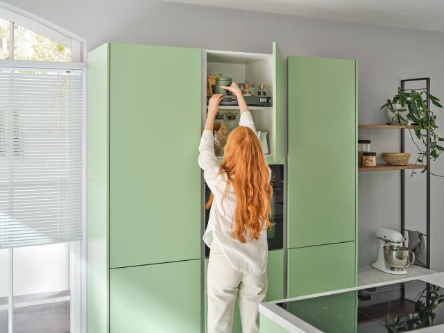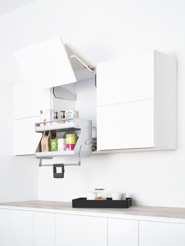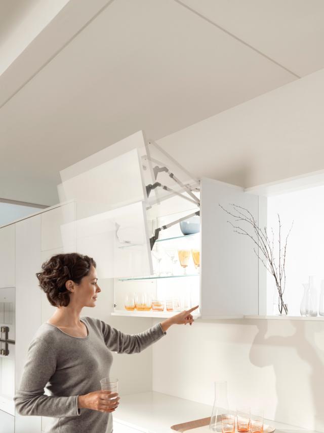 AVENTOS fra Blum er et elegant hævebeslag til overskabe, hvor lågen løftes op og ud af vejen – for fri adgang og optimal bevægelsesfrihed.