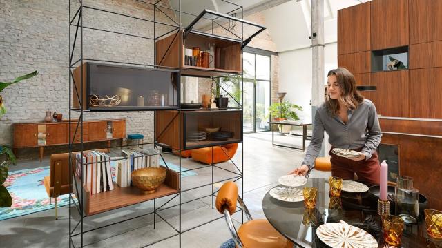 Med AVENTOS klaplågebeslag kan du fremstille flotte individuelle møbler eller hele opholdsrum: Uanset om det er foldelåge, svinglåge, hævelåge eller klaplåge - får du høj komfort i overskabet. Usædvanligt design lykkes med det integrerede klaplågebeslag AVENTOS HKi. Og selv til de mindste klaplåger har vi den passende løsning.