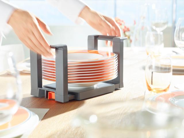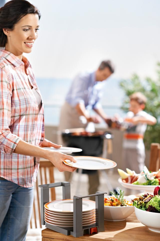 Op til 12 tallerkner kan opbevares sikkert og er bekvem at transportere.