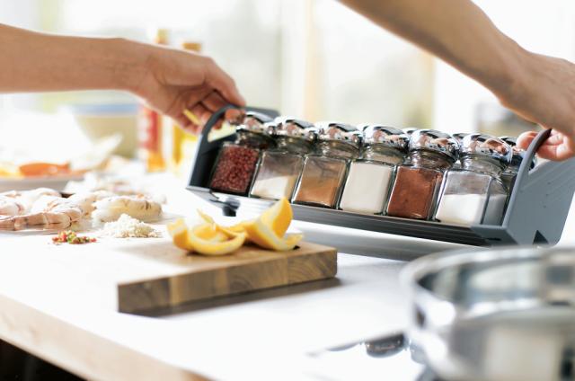 Krydderier er opbevaret sikkert og overskueligt. Til korpusbredde 300, 400 og 450 mm.