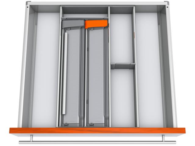 Begejstrende orden og god oversigt, tilpasset forskellige anvendelser i skuffen. Fås til længderne fra 450 til 650 mm.
