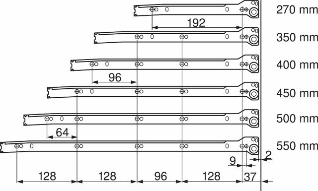 Fås til længde 270, 400, 450, 500 og 550 mm.