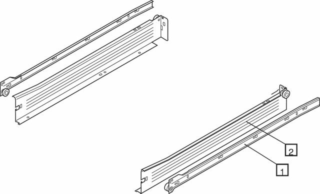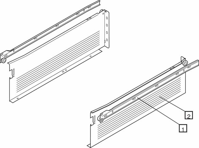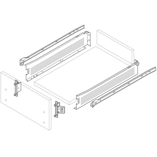 METABOX-sæt med skuffeskinner og skuffesider.